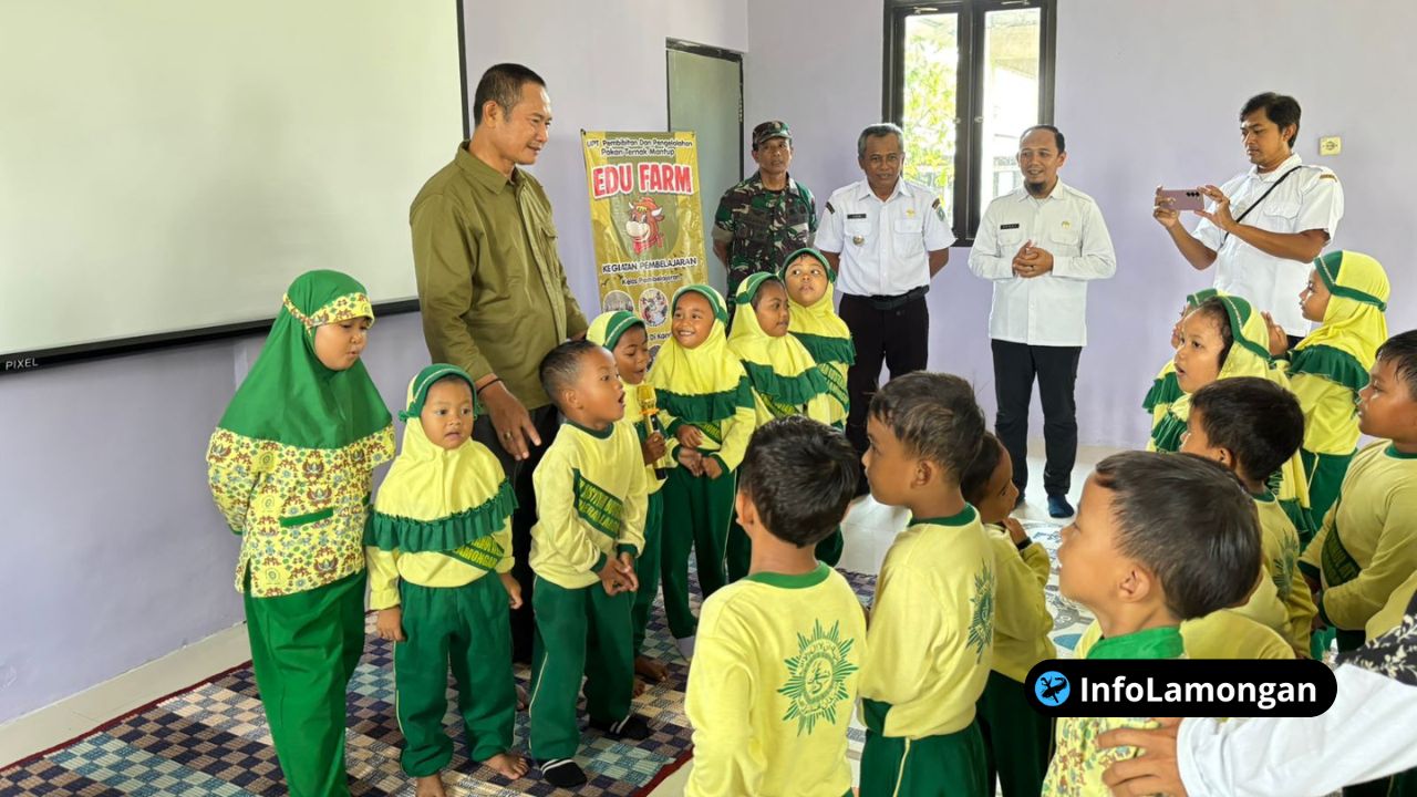 Pada Rabu (11/02/2026), sebanyak 24 siswa TK Aisyiyah Kelas A menjadi saksi bagaimana program ini dijalankan. Kunjungan mereka bukan sekadar wisata biasa, melainkan sebuah ekspedisi pengetahuan yang mengenalkan dunia peternakan secara langsung, interaktif, dan aplikatif. Hadir mendampingi, Bupati Lamongan Yuhronur Efendi yang akrab disapa Pak Yes, turun langsung melihat antusiasme anak-anak dalam mengenal hewan ternak dan proses pengolahan hasil peternakan.