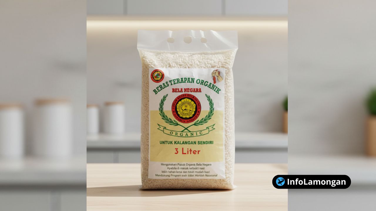Infolamongan.com – Di tengah hiruk-pikuk industri pertanian modern yang kerap bergantung pada input kimia, sekelompok patriot di Lamongan menawarkan sebuah jalan kembali kepada harmoni alam. Mereka tidak hanya menanam padi, tetapi juga menanam nilai-nilai. Hasilnya adalah Beras Terapan Organik Bela Negara, sebuah produk pangan yang menjadi simbol perpaduan antara cinta tanah air, kepedulian lingkungan, dan komitmen terhadap kesehatan masyarakat. Inisiatif yang berakar di Desa Sumurgenuk, Kecamatan Babat, ini membuktikan bahwa semangat bela negara dapat diwujudkan bukan hanya di medan tempur, tetapi juga di hamparan sawah yang hijau.