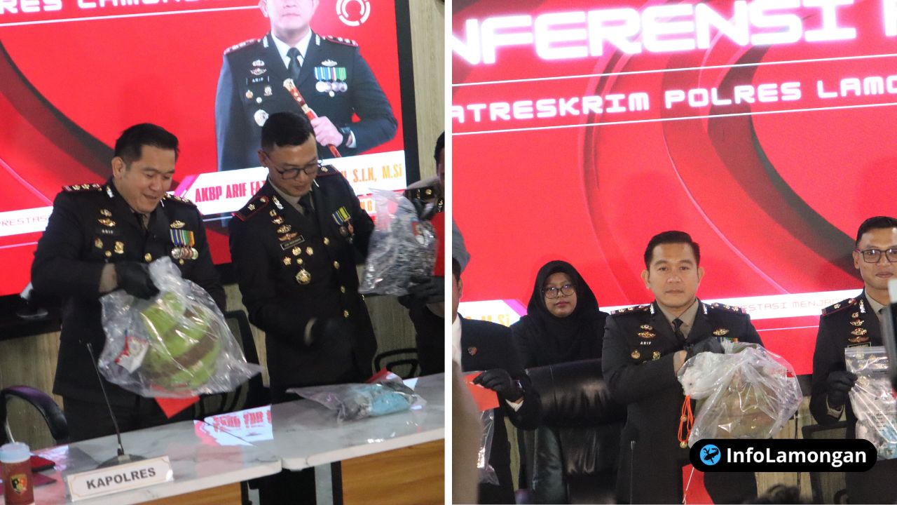 Infolamongan.com – Satuan Reserse Kriminal (Satreskrim) Polres Lamongan menggelar konferensi pers yang mencekam pada Senin (26/01/2026) pagi, mengungkap tabir di balik kasus Kekerasan Dalam Rumah Tangga (KDRT) dan pembunuhan berencana yang menggemparkan Dusun Talun, Desa Sidogembul, Kecamatan Sukodadi. Kapolres Lamongan, AKBP Arif Fazlurrahman, didampingi jajaran utama, membeberkan secara detail motif, modus, dan kondisi psikologis pelaku yang tega membunuh anak kandungnya sendiri dengan cara yang sangat brutal.