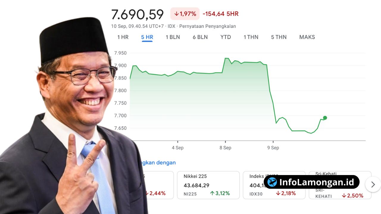 Infolamongan.id – Pelantikan Purbaya Yudhi Sadewa sebagai Menteri Keuangan pada Senin (08/09/2025) justru diikuti oleh pelemahan signifikan Indeks Harga Saham Gabungan (IHSG) yang menyentuh 1,5%. Pernyataan Menkeu baru bahwa penurunan ini terjadi karena “pasar belum mengenal dirinya” menuai kritik dari berbagai analis dan pengamat ekonomi.