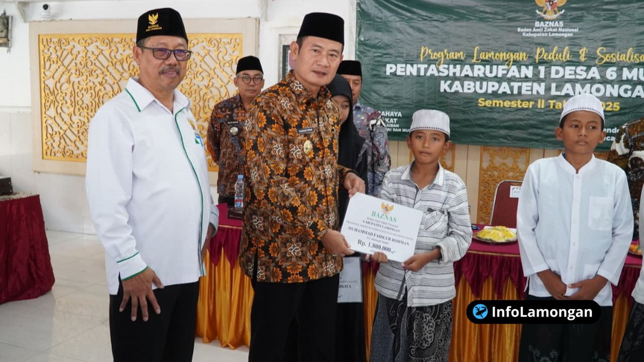 Infolamongan.com – Kebijakan progresif Pemerintah Kabupaten (Pemkab) Lamongan dalam mengoptimalkan potensi zakat profesi Aparatur Sipil Negara (ASN) mulai menunjukkan dampak sosial yang nyata dan terukur. Berbekal instruksi Bupati Yuhronur Efendi yang mewajibkan seluruh ASN di lingkup Pemkab untuk menyalurkan zakat profesi sebesar 2,5 persen dari gaji bulanan, akumulasi dana yang terkumpul di Badan Amil Zakat Nasional (Baznas) Kabupaten Lamongan kini menjadi salah satu instrumen strategis dalam upaya pengentasan kemiskinan.